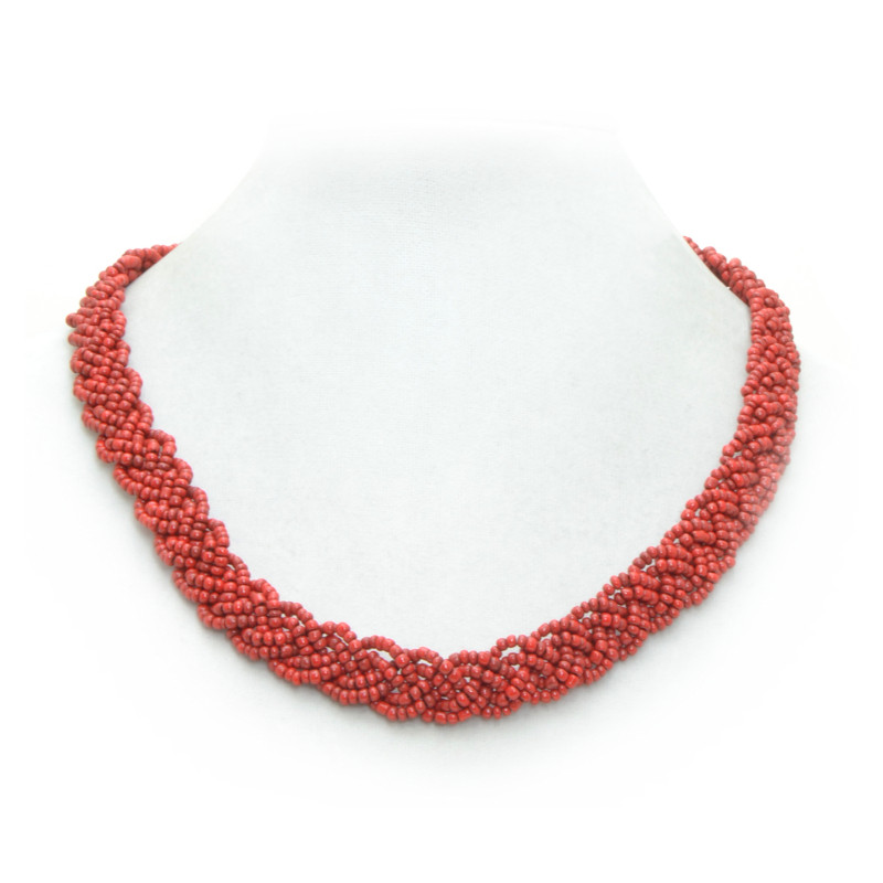 Braided Bead Necklace in Red.