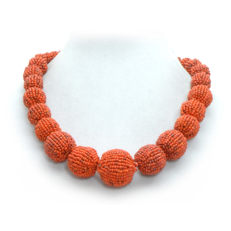Graduated Beaded Ball Necklace in Orange.
