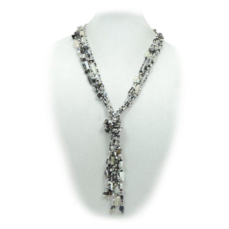5 Strand Beaded Knot Necklace in Black, Gunmetal Mix.