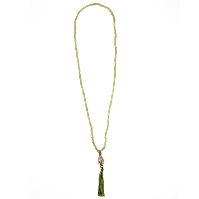 Buddha Head & Tassel Necklace in Lime, Brass.