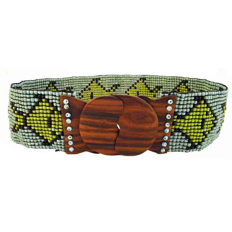 Fish Pattern Stretch Belt w/Wood Buckle in Lime, Turquoise.