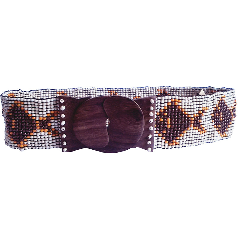 Fish Pattern Stretch Belt w/Wood Buckle, Cream, Brown, Orange.