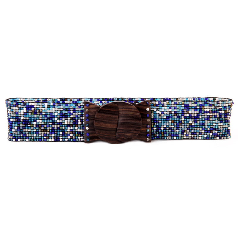 Beaded Stretch Belt w/ Wood Buckle in Mixed Maritime.