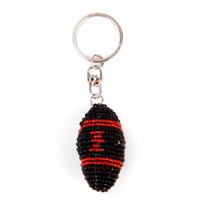 Beaded Football Keychain in Black, Red.
