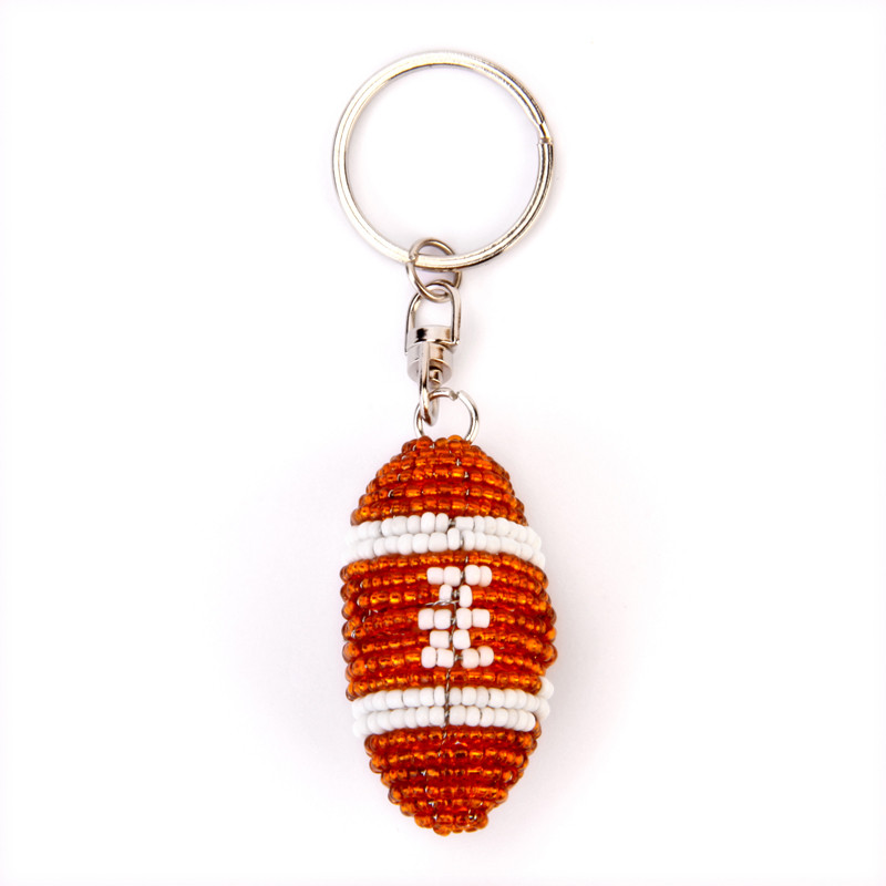 Beaded Football Keychain in Orange, White.
