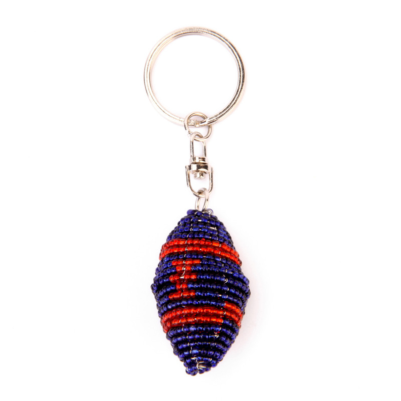 Beaded Football Keychain in Red, Blue.