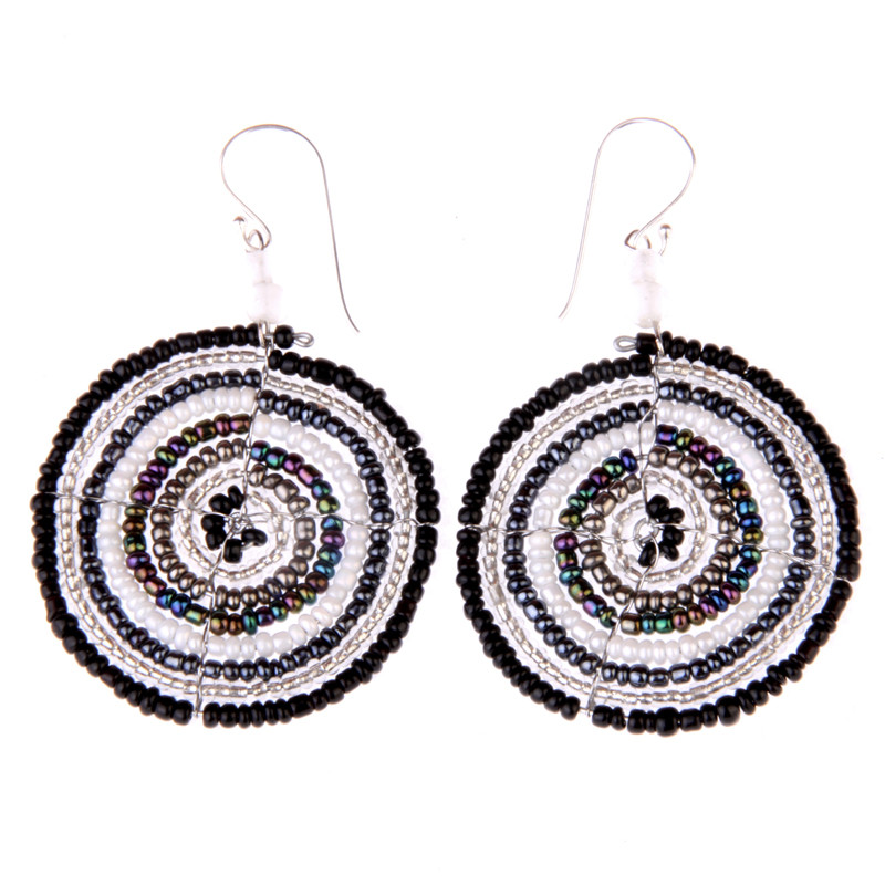 Circle style earrings, with 2 bead accent. Sterling silver earwire.