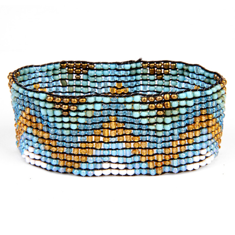 1" Chevron Cuff in Turquoise, Gold, Cream.