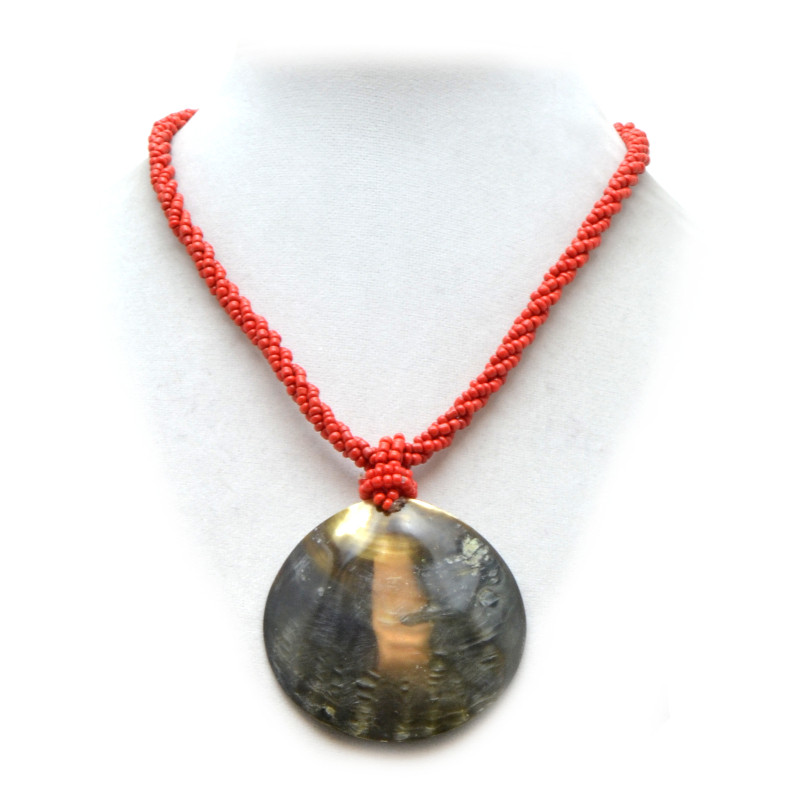 Twisted Strand Beaded Necklace with Grey MOP Pendant in Red.