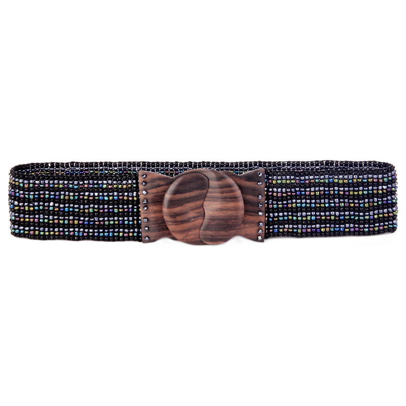 Stripes stretch belt with Sono wood buckle.