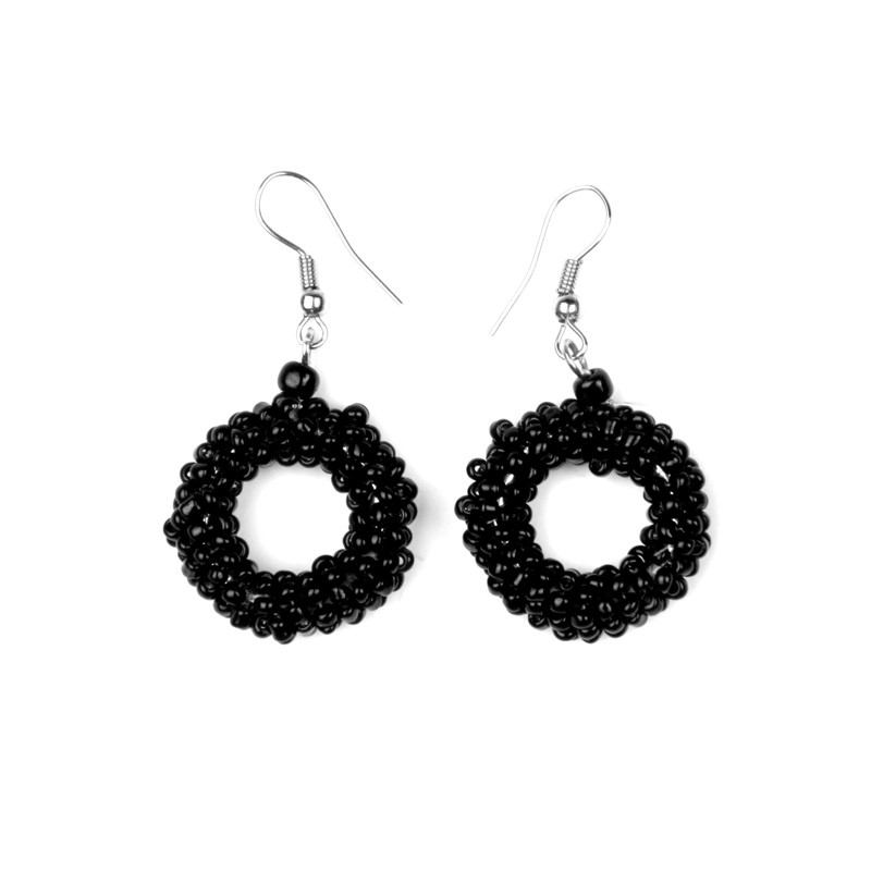 Beaded Donut Style Earrings in Antiqued Black.