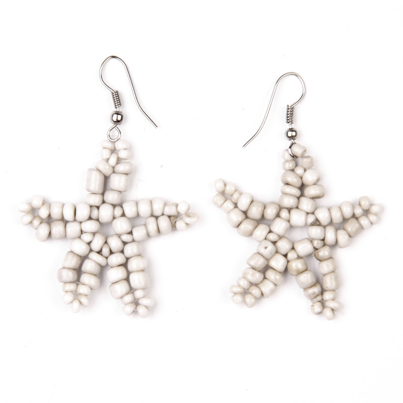 Beaded Starfish Style Earrings in Antiqued Cream.