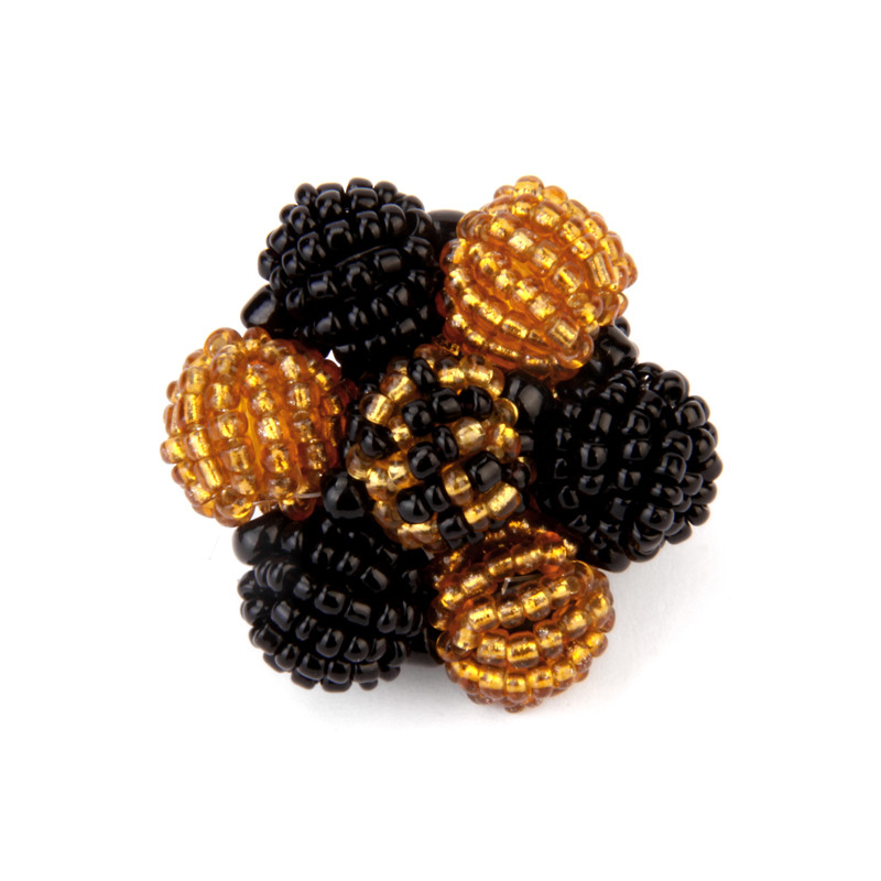 7 Beaded Ball Stretch Ring in Black & Gold.