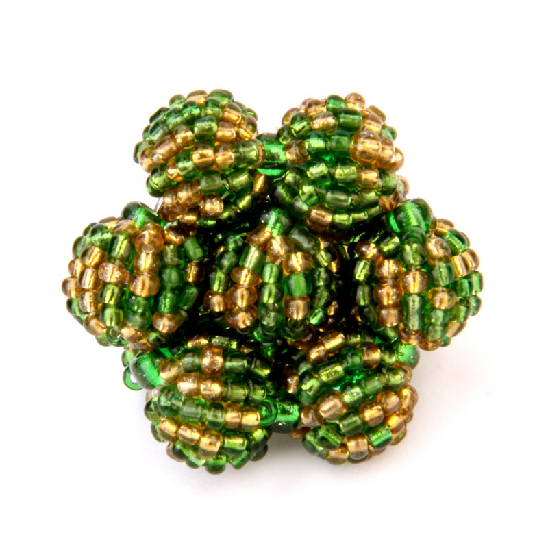 7 Beaded Ball Stretch Ring in Green & Gold.
