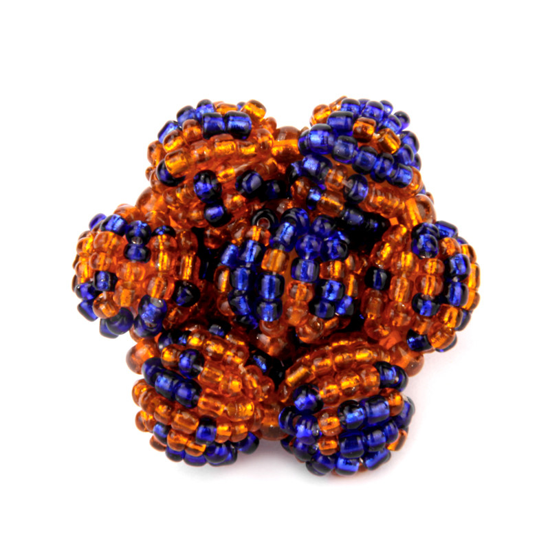 7 Beaded Ball Stretch Ring in Orange & Blue.