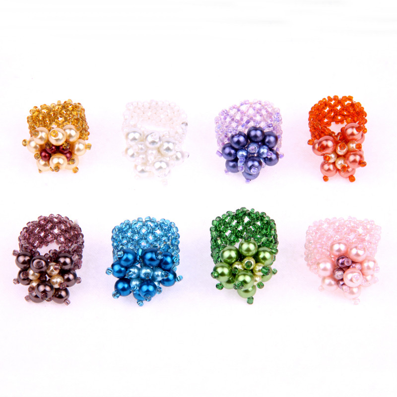 24 Pcs. $1.00 Ea. (Was $2.50) Small Pearl Cluster Beaded Ring in Assorted Colors.