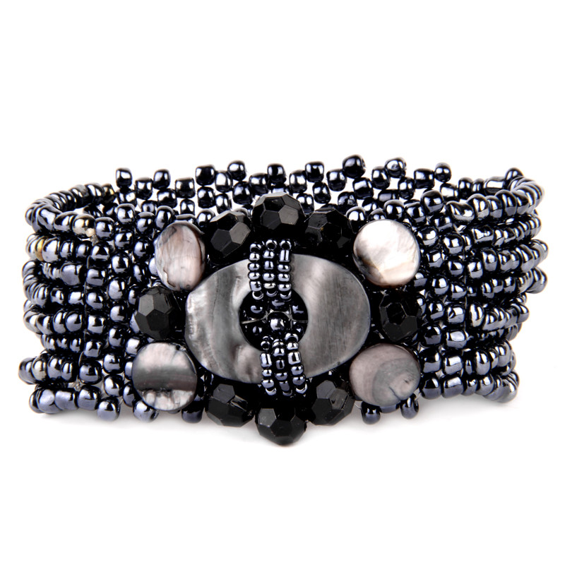 Stone & Java Glass Bead Cuff in Gunmetal.