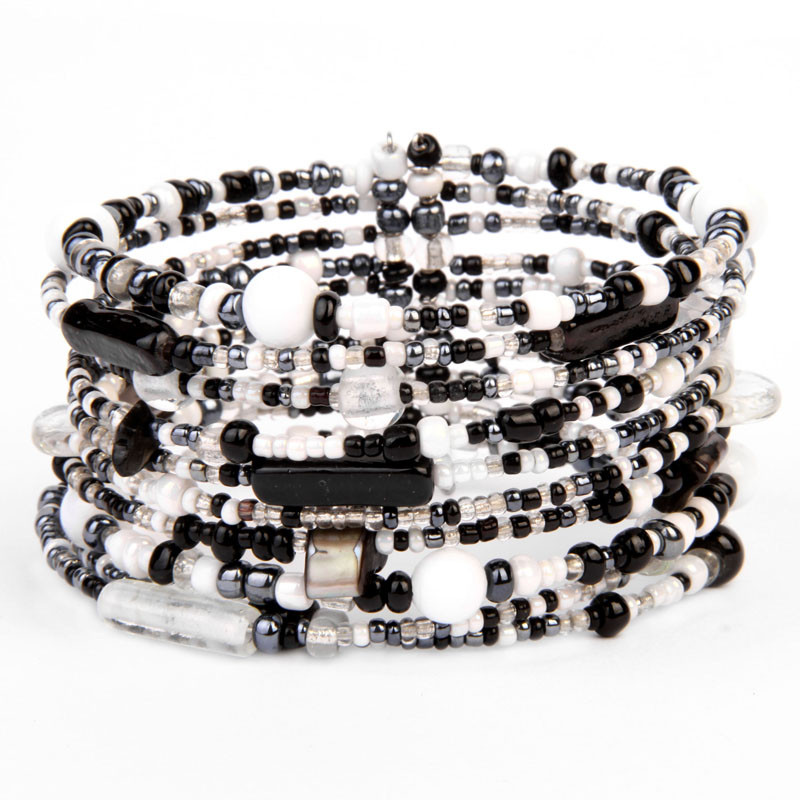 Bead & Java Glass Wire Cuff, Mixed Black, White.