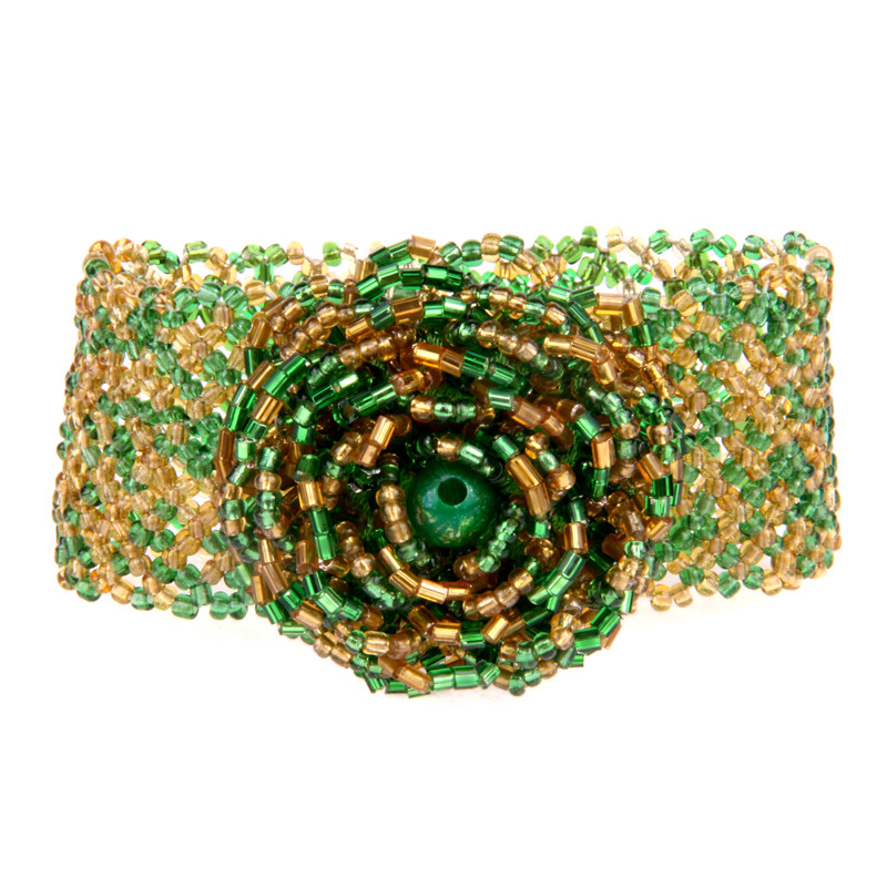 Bead & Java Glass Wire Cuff, Green & Gold.
