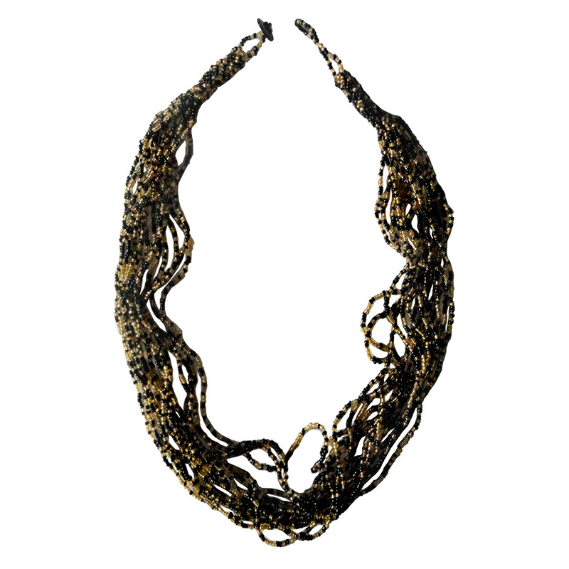 Large 15 Strand Beaded Necklace in Black & Gold.