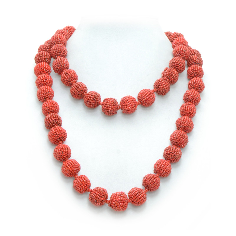 70 Count Beaded Ball Necklace in Red.