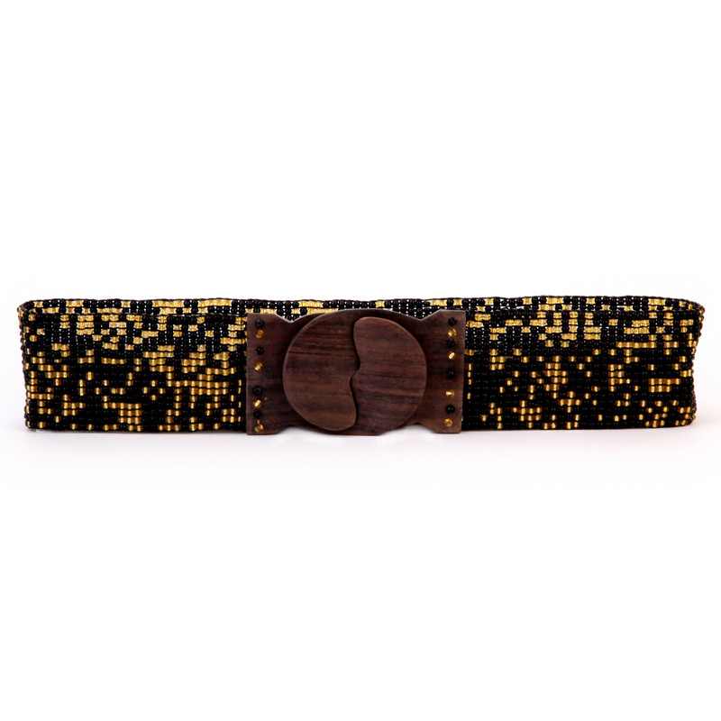 Mixed Stretch Belt, Wood Buckle Mixed Black & Gold.