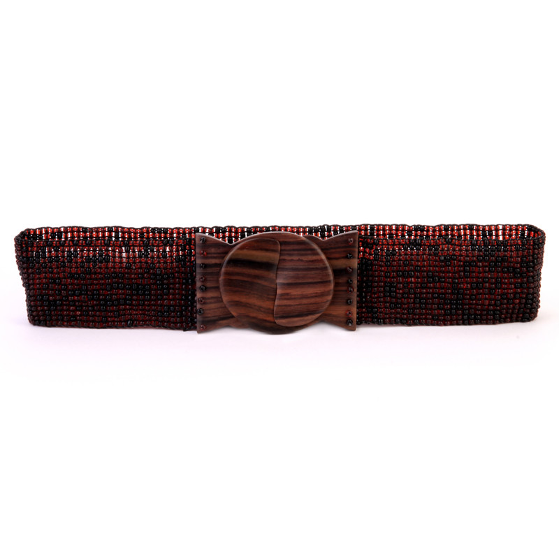 Mixed Stretch Belt, Wood Buckle Mixed Garnet & Black.