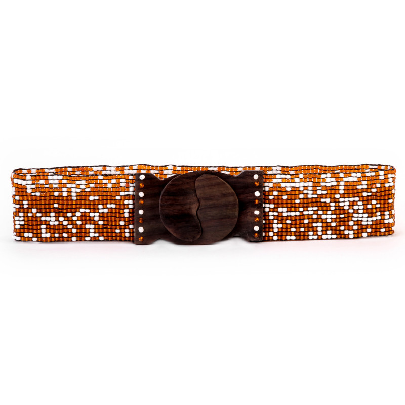 Mixed Stretch Belt, Wood Buckle Mixed Orange & White.