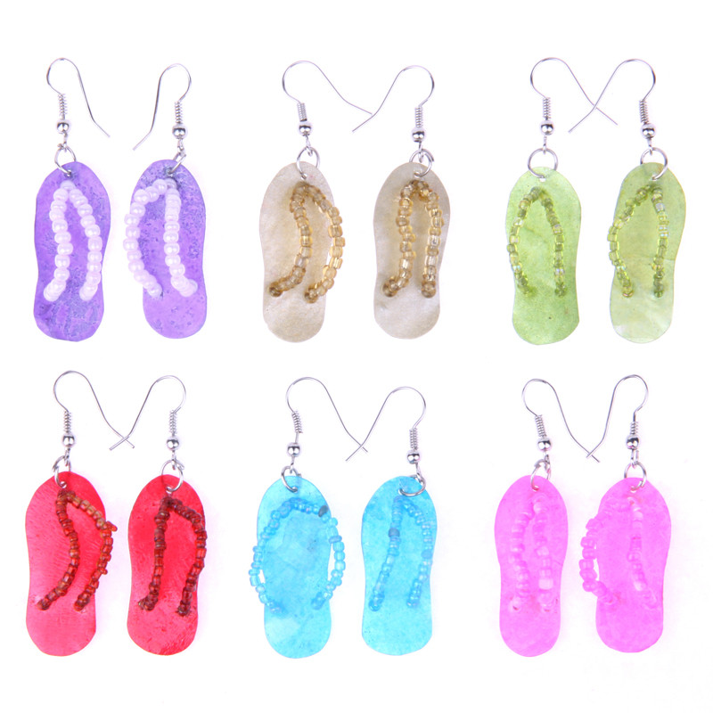 12 Pcs. $1.00 Ea. (Was $2.95) Flip Flop Shell and Bead Earring in Assorted Colors.