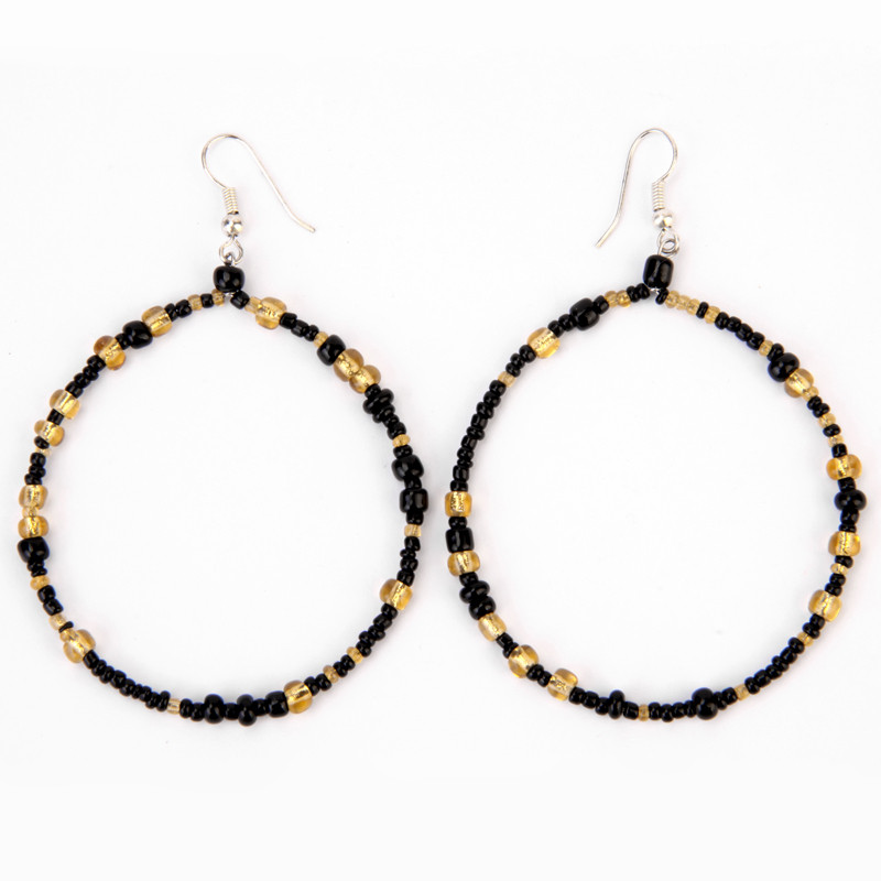 Single Hoop Earrings in Black & Gold.