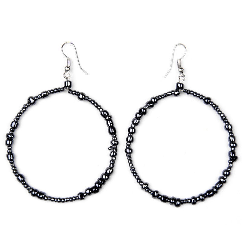 Hoop style earrings, mixed bead sizes.