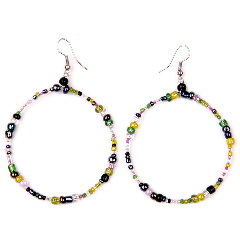 Hoop style earrings, mixed bead sizes.