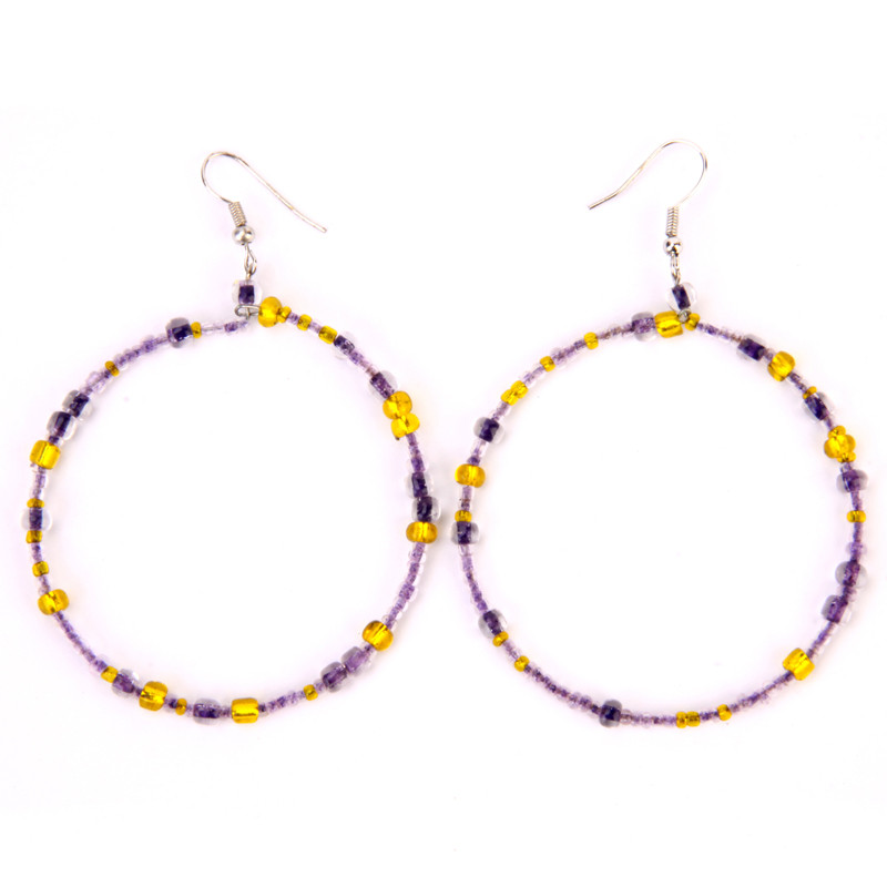 Single Hoop Earrings in Yellow & Purple.