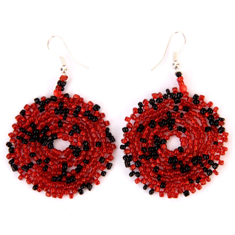 Crocheted Style Circle Earrings in Black & Red.