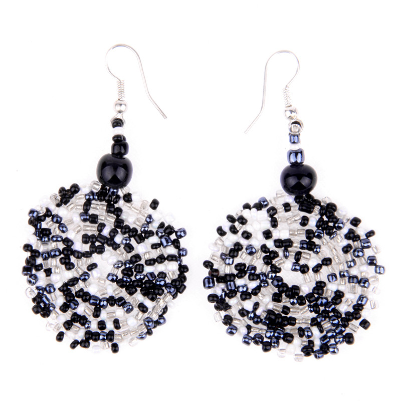 Crocheted Style Circle Earrings in Black, Cream, Silver.