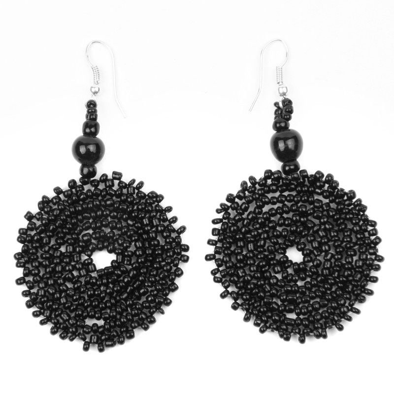 Crocheted Style Circle Earrings in Antiqued Black.
