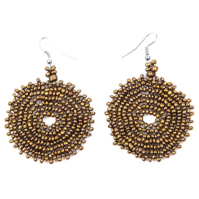 Crocheted Style Circle Earrings in Bronze.