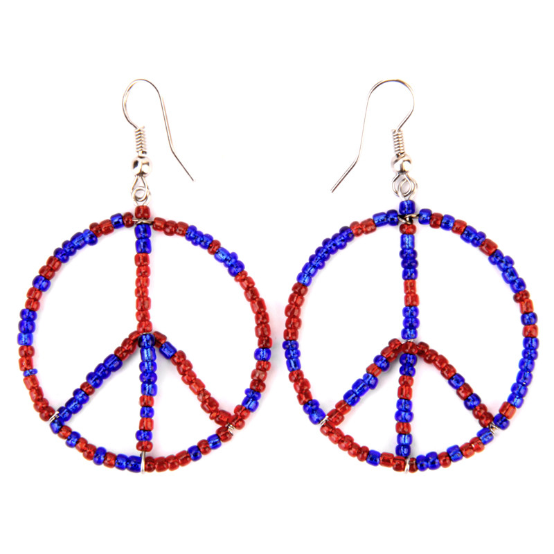 Peace Sign Beaded Earring in Red & Blue.