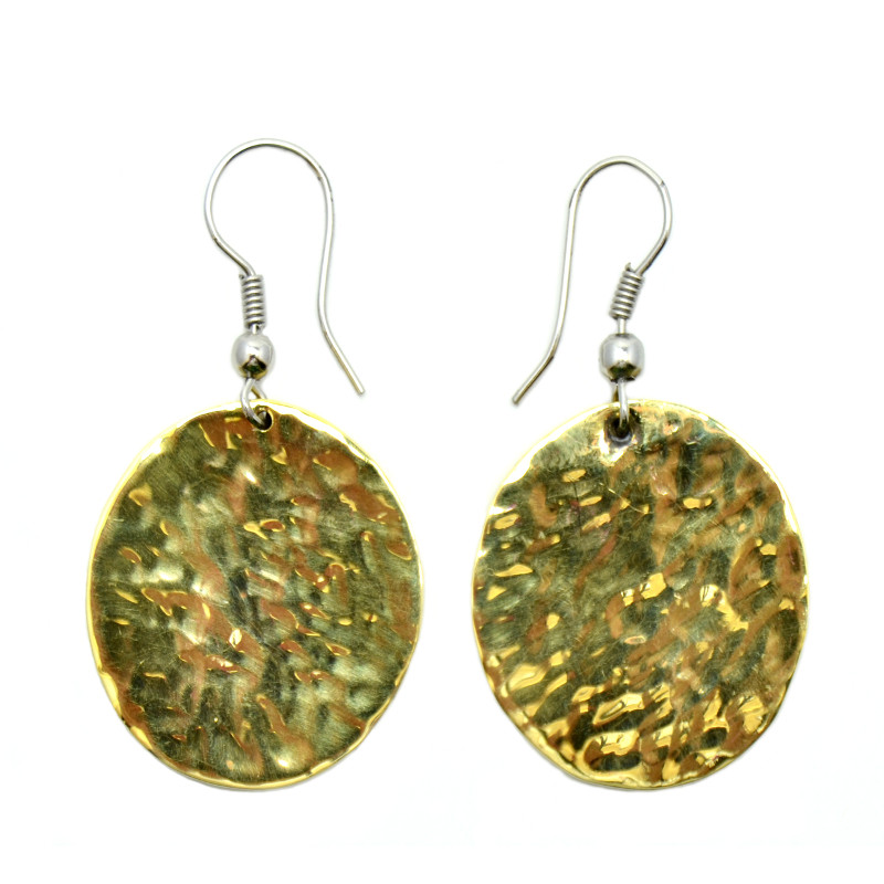 Hammered round brass earrings.