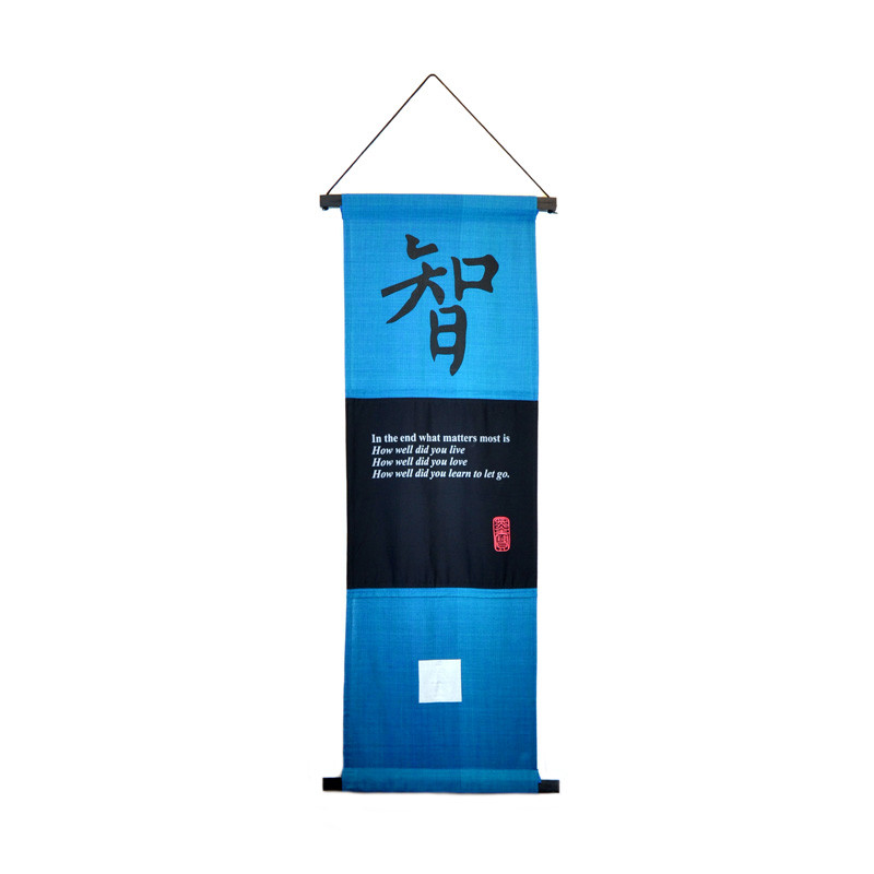 Our wall quote hangings are made by a cooperative of women in the village of Klung Kung. 100% cotton fabric is hand loomed, paneled and screen printed; wood stability rods are hand painted as well. Hang from attached cord.