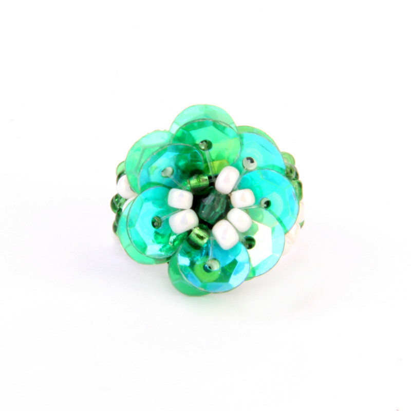 Small Rose Stretch Ring in Green & White.