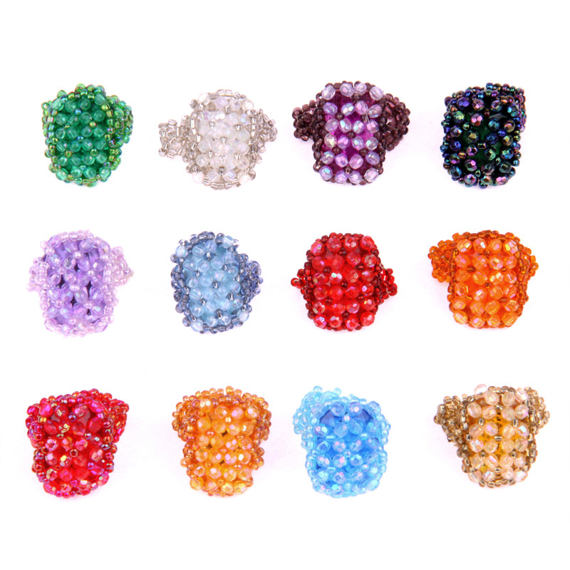24 Pcs. Signet Style Beaded Ring in Assorted Colors.