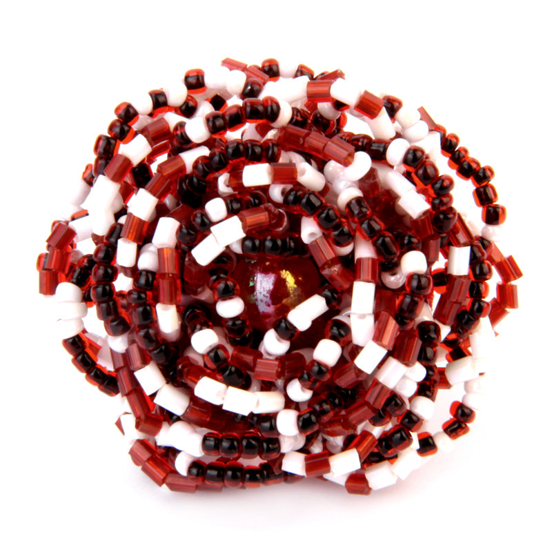 Large Rose Stretch Ring in Garnet & White.