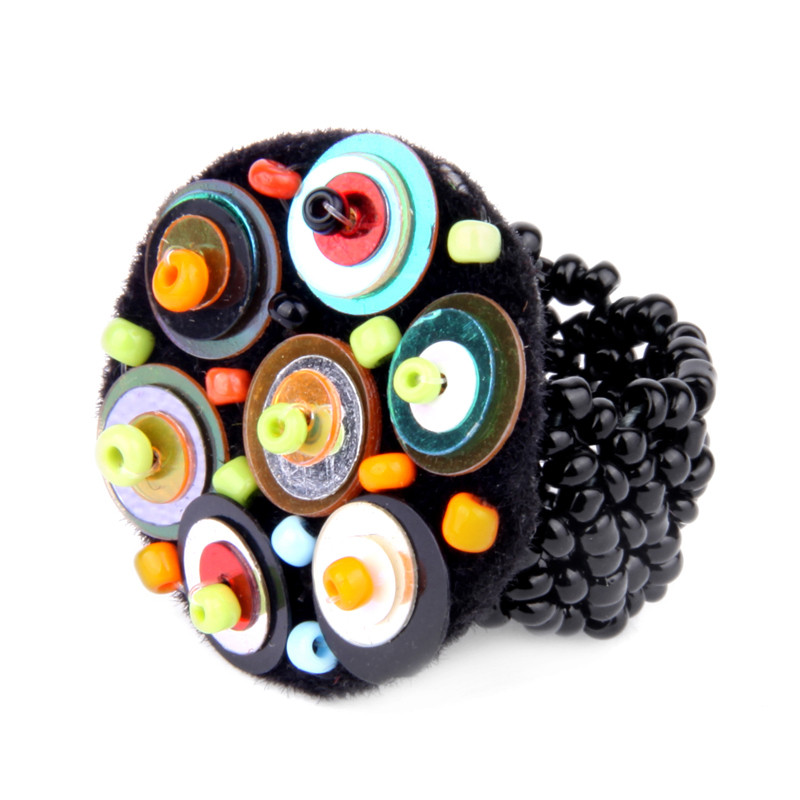 Sequin & Bead Circle Ring in Mixed, Black.