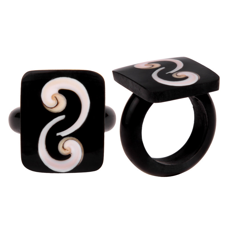 Swirl Inlayed Shell in Black Rectangle Resin Ring.