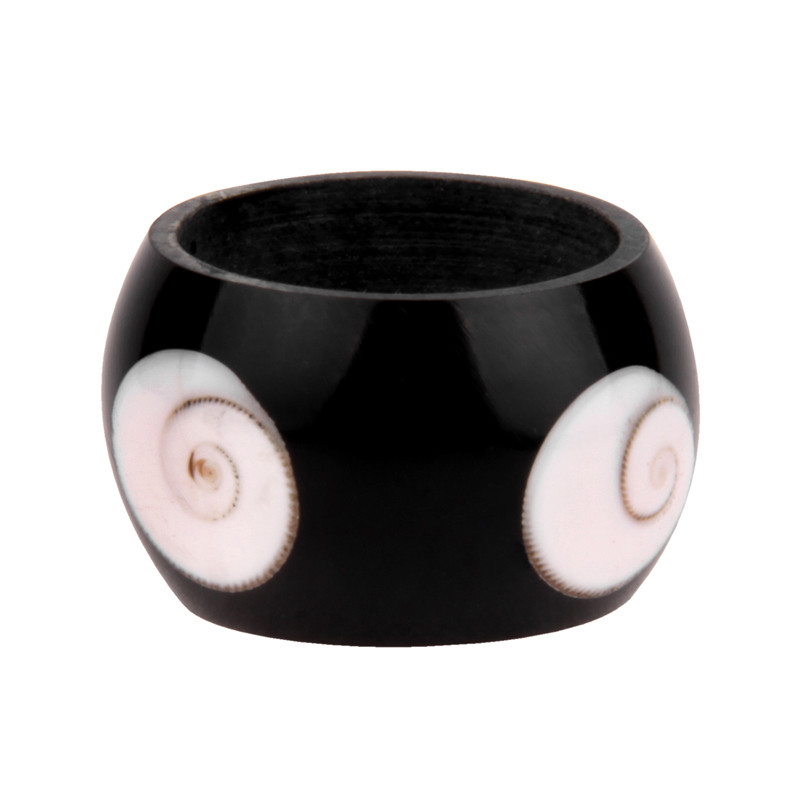 Swirl Inlayed Shell in Black Band Resin Ring.