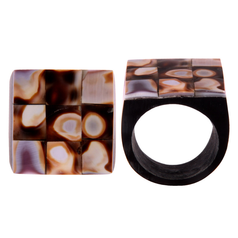 9 square shell mosaic inlay on black resin ring. Handmade.