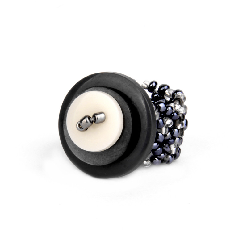 Stacked Buttons Ring in Black, Gunmetal, White.