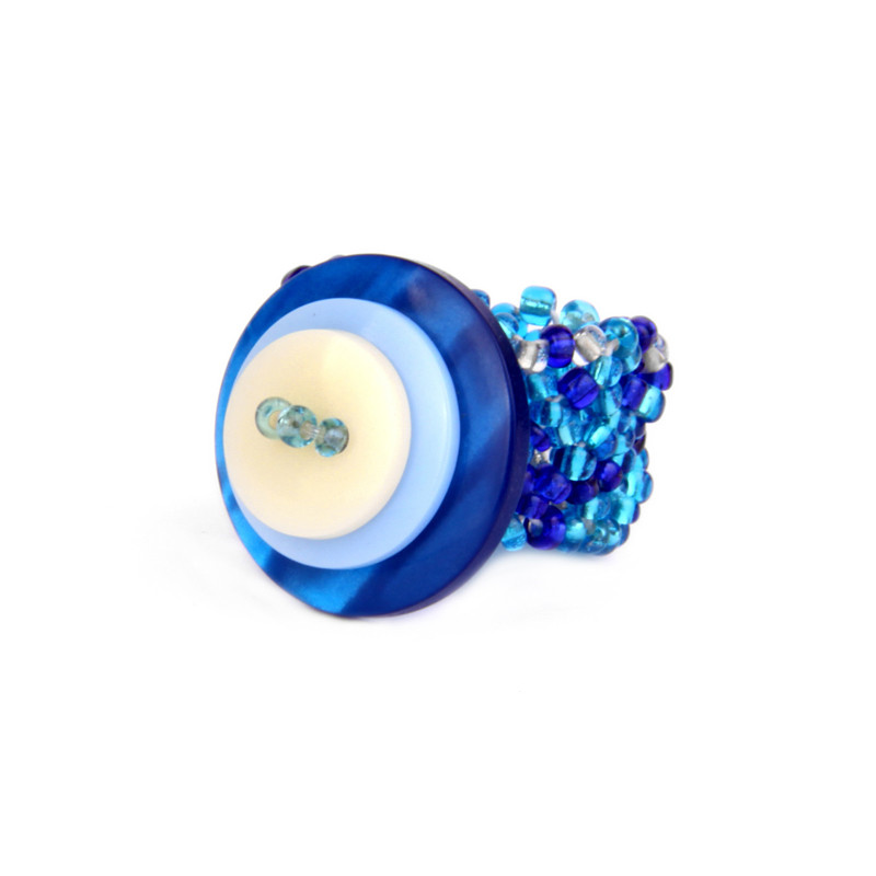 Stacked Buttons Ring in Blue, Cream, Turquoise.