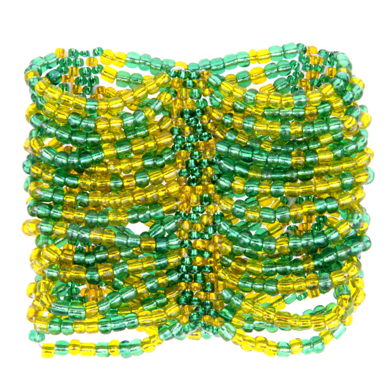 Wave Beaded Stretch Bracelet in Green & Yellow.